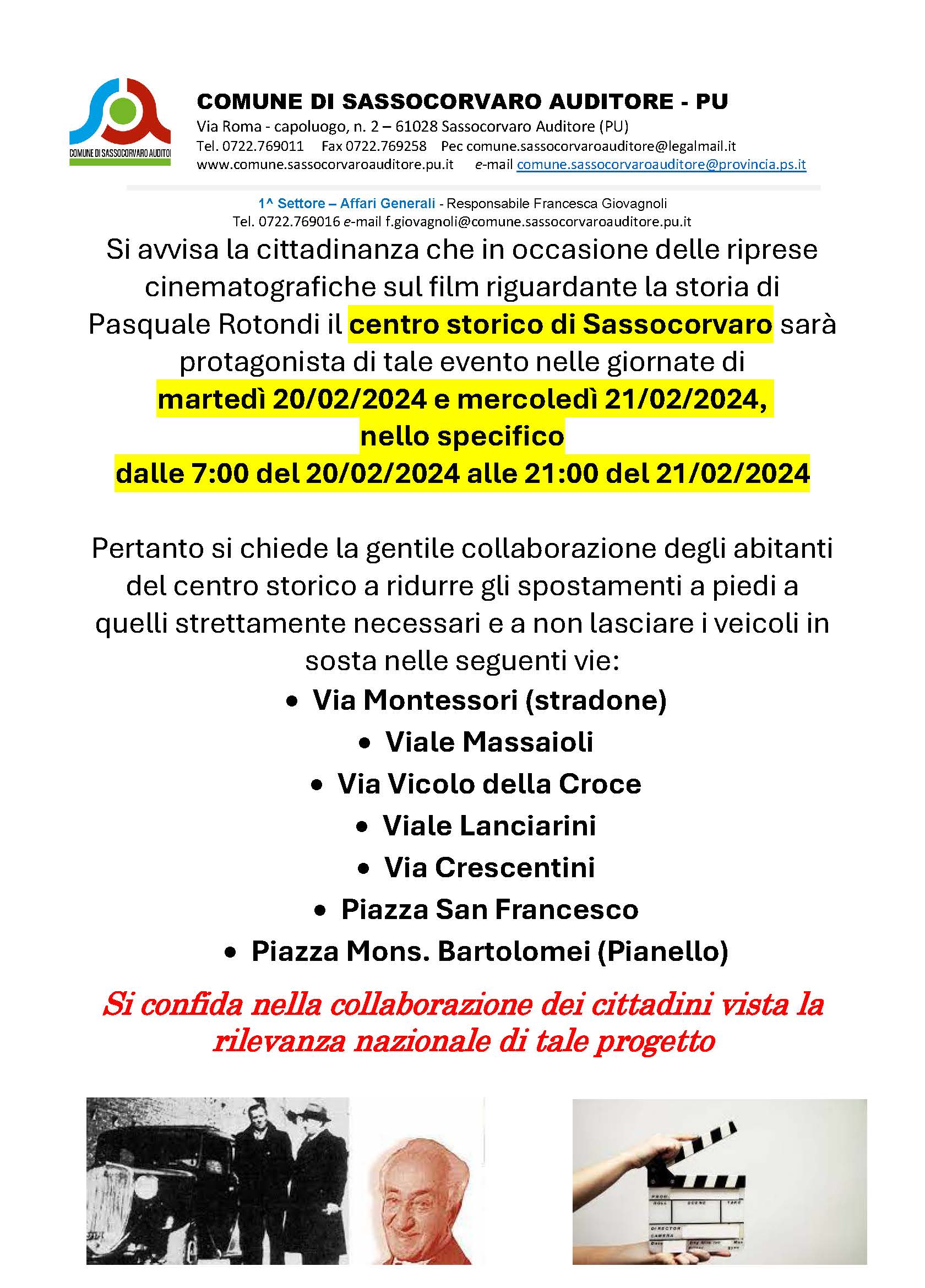 AVVISO ALLA CITTADINANZA - RIPRESE FILM