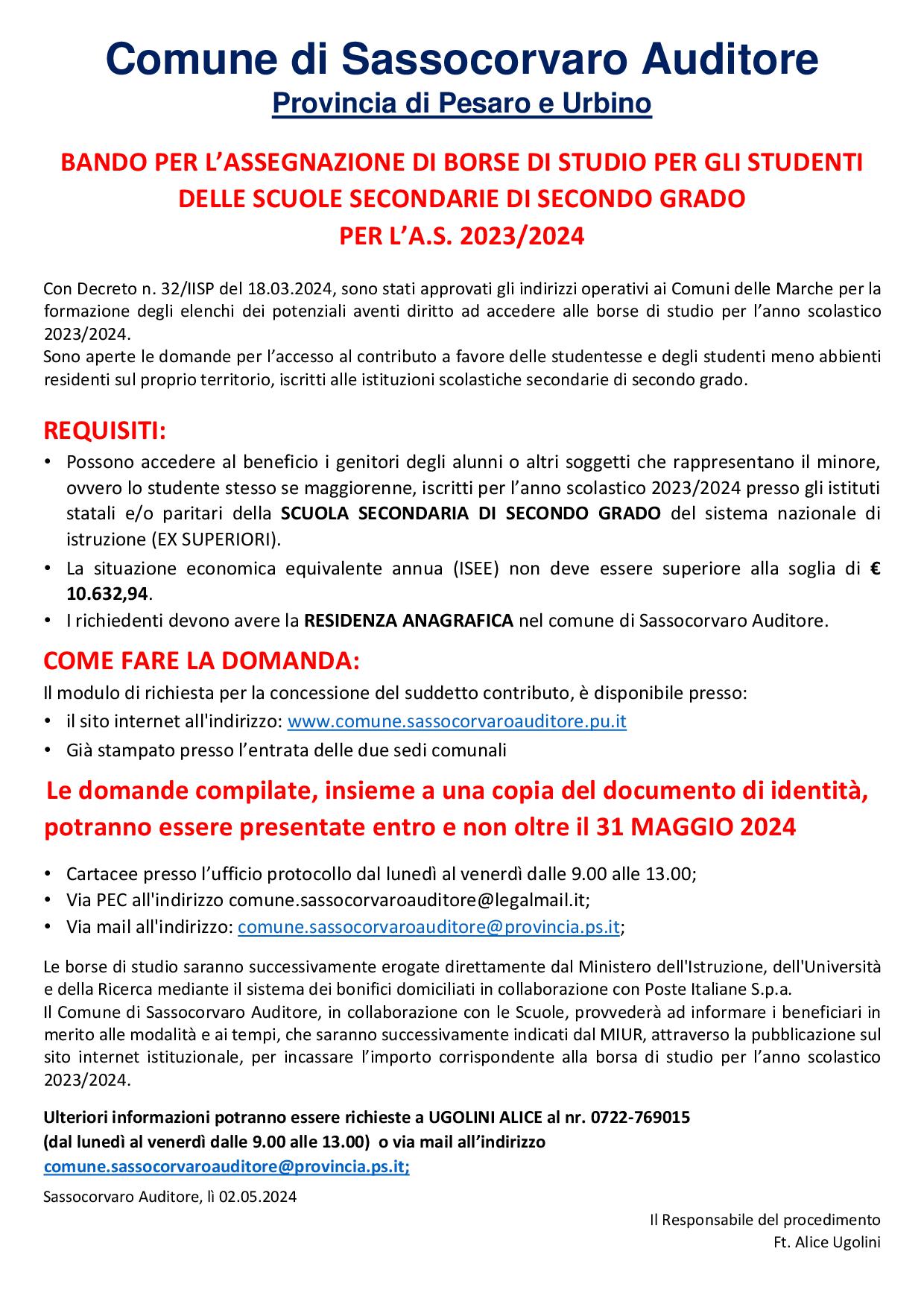 BORSA DI STUDIO Anno Scolastico 2023/2024